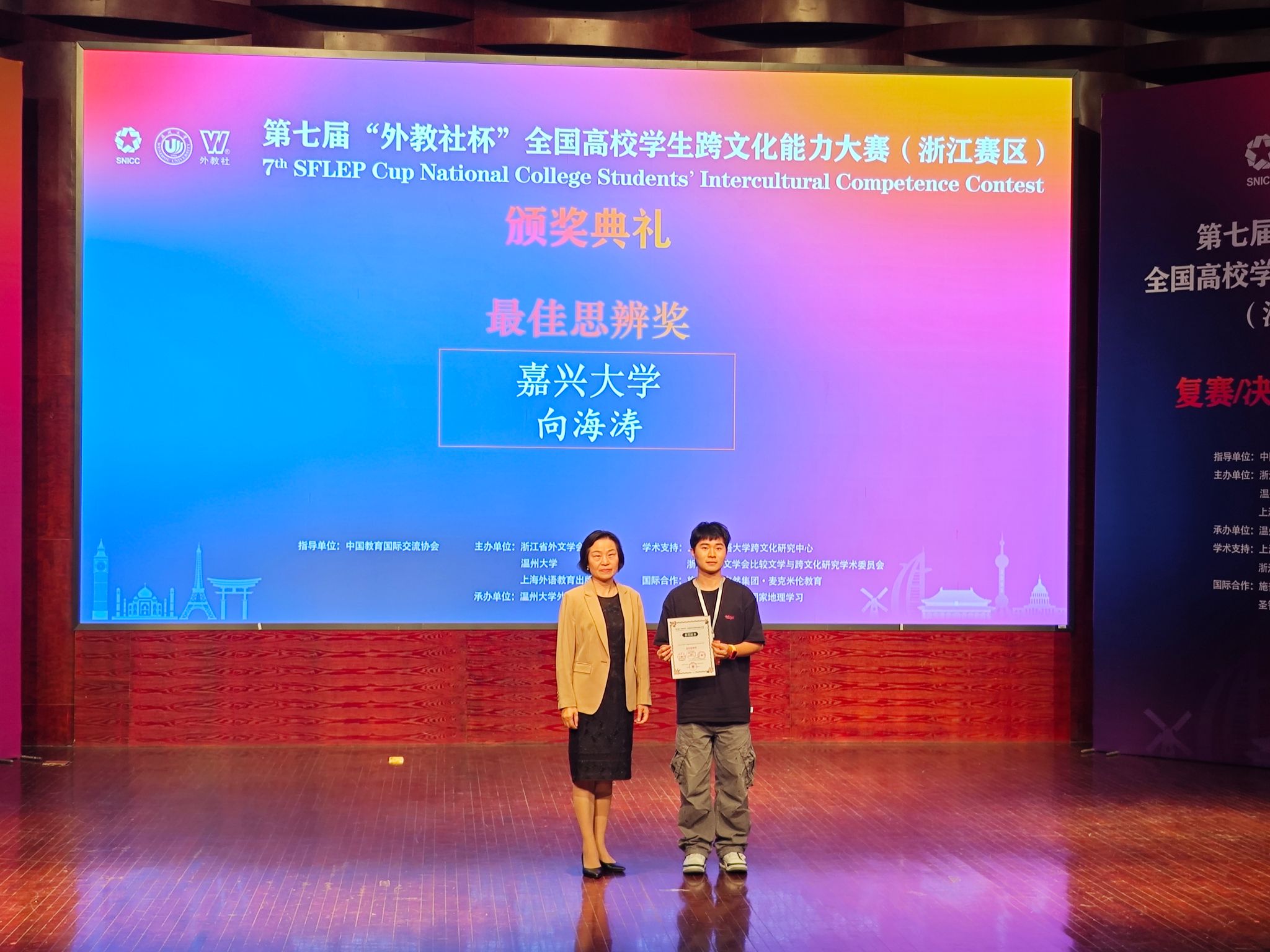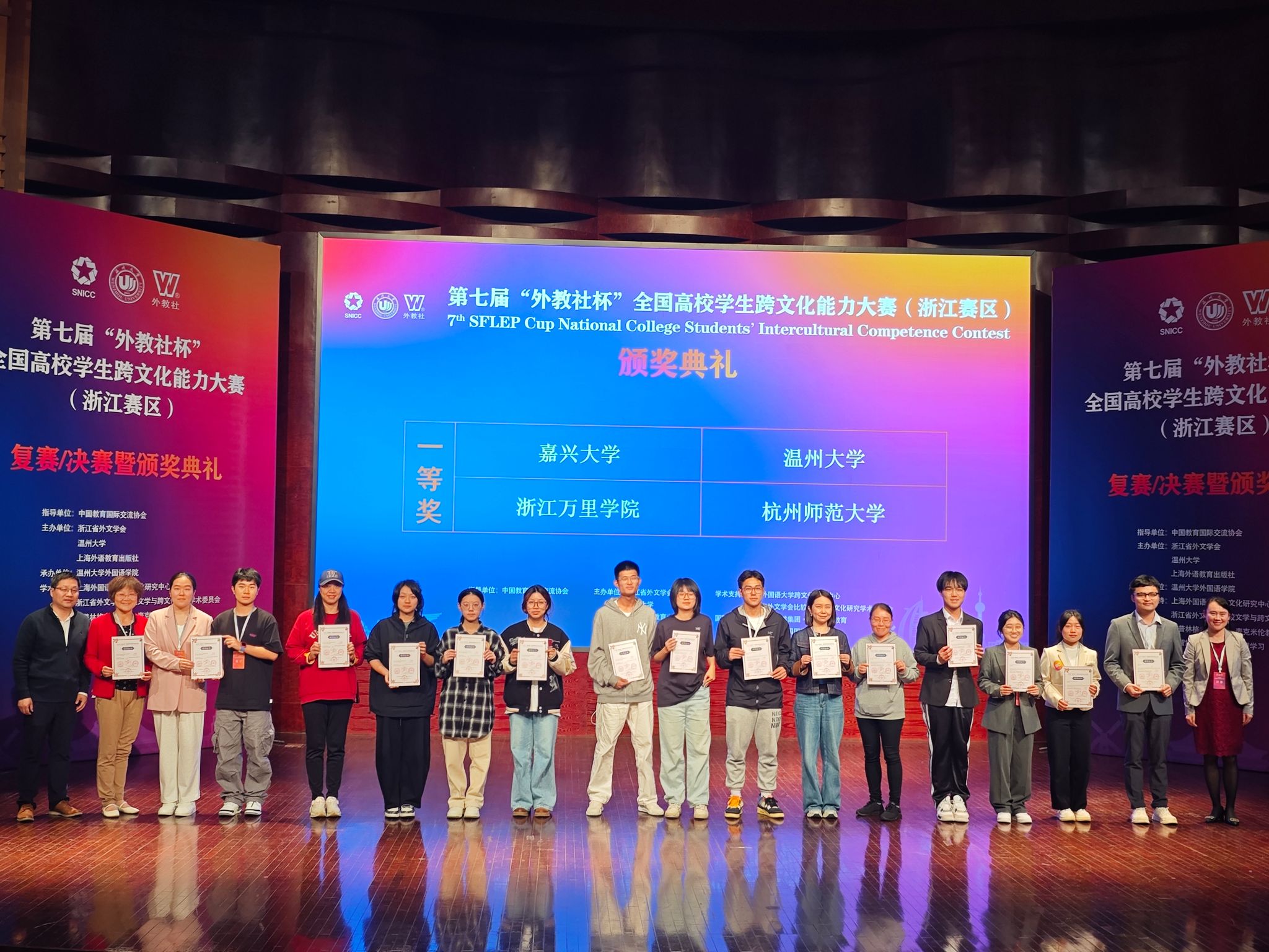 11月16日至17日,第七届“外教社杯”全国高校学生跨文化能力大赛浙江赛区(英文组赛道)在温州大学成功举办,吸引了来自浙江省30所高校的代表队参加。我校外国语学院学子向海涛、项夕雅和周子璇三位选手代表学校参赛并获得省级一等奖,其中向海涛同学获得“最佳思辨奖”。这是我校学生在该项赛事获奖上取得的新突破。
