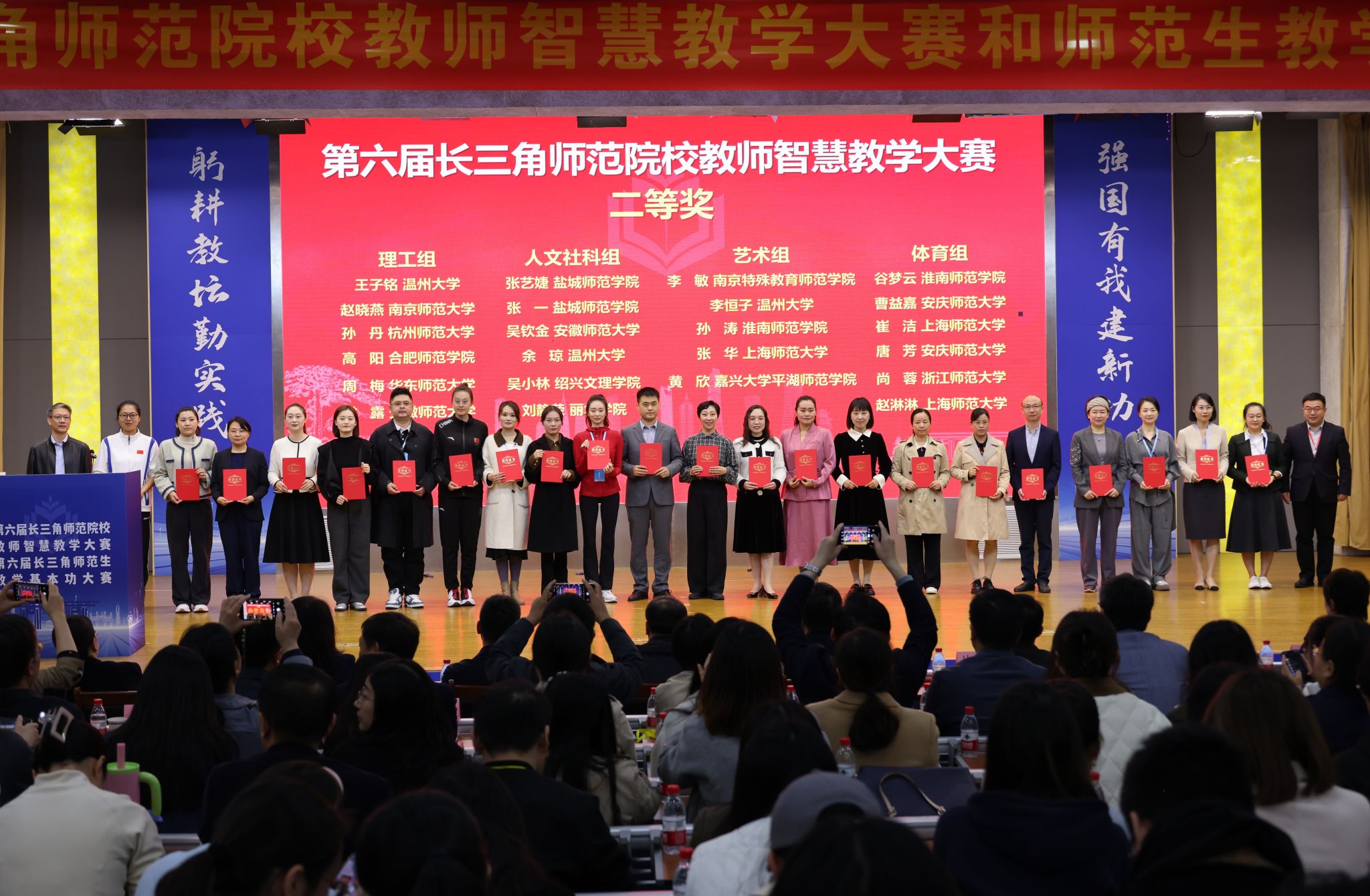 11月15-17日,由上海市教育委员会、浙江省教育厅、江苏省教育厅、安徽省教育厅联合主办的第六届长三角师范院校教师智慧教学大赛和师范生教学基本功大赛在安徽师范大学落幕。我校平湖师范学院黄欣老师由浙江省教育厅遴选参赛,获得第六届长三角师范院校教师智慧教学大赛艺术组二等奖;平湖师范学院小学教育专业骆婷同学获得第六届长三角师范生教学基本功大赛小学教育组二等奖,体育教育专业许延哲同学荣获得综合组二等奖。