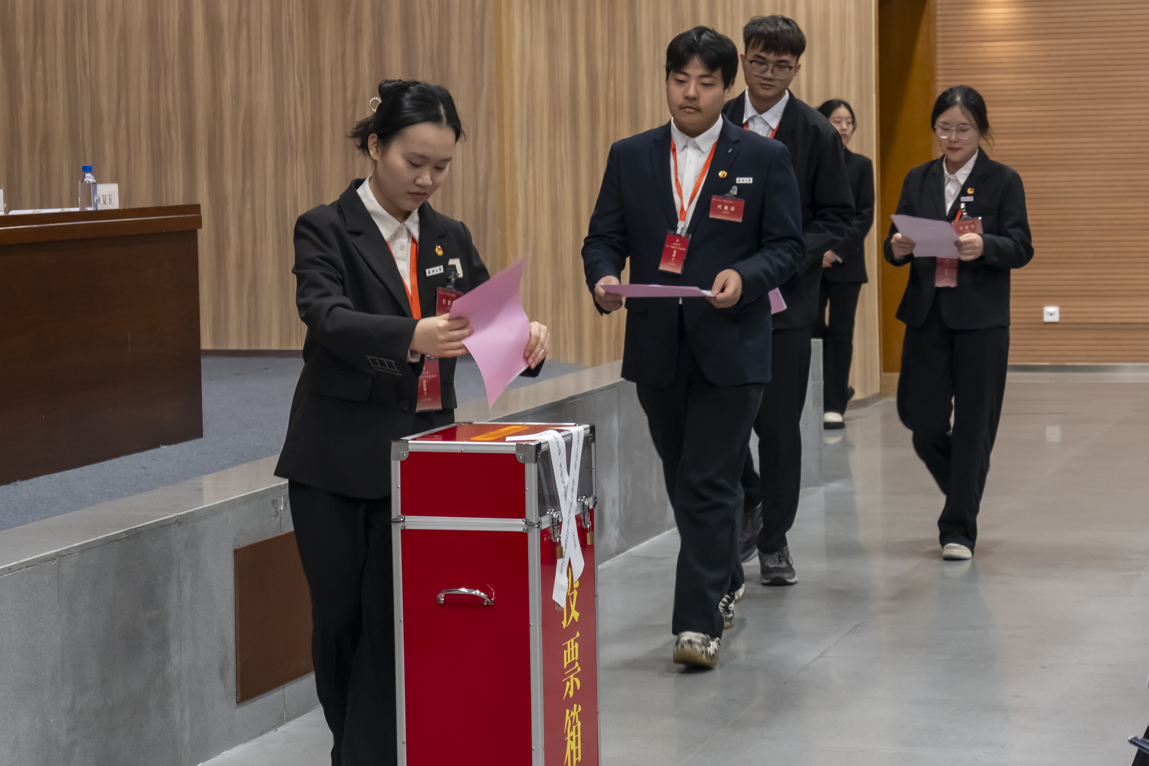会议在校歌声中圆满落幕。新一届研究生会将在校党委的领导下,研工部和校团委的具体指导下,团结带领全体研究生秉承“方正为人、勤慎治学”校训,践行“求是求真求正”校风,勇攀科研高峰,为学校“冲‘A’、拼‘博’、创一流”贡献青春力量。