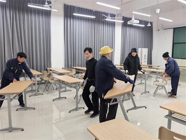 为了保障考试顺利进行,物业服务部严格按照上级要求,对教室进行了物品清理、卫生打扫,高效率地完成了所有考场教室的布置;保洁员对考场周边的公共区域进行了全面细致的卫生清扫,营造了干净、整洁、明亮的考试环境。