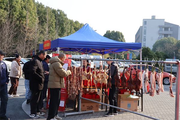 活动开始前,后勤商贸服务部根据任务安排,提前完成了门头布置、帐篷搭建、桌椅摆放等各项准备工作。此次活动共邀请27家厂商参加,涵盖新鲜牛羊肉、蔬菜、酒水、土特产、水果、卤味、保健品、调味品、粮油、文创玩偶、服饰、汽车等多个品类。活动现场,每个展位前都挤满了感兴趣的师生,工作人员热情地向大家介绍特色的商品和优惠的价格。一圈逛下来,每一位老师和同学都选购到了新鲜的牛羊肉、价廉物美的深海大黄鱼,以及适合冬季进补的枸杞、红枣、破壁灵芝孢子粉等,还有超级软萌的嘉大文创玩偶。此外,在年货节现场,大家还品尝并挑选了美味的缙云土特产、嘉兴五芳斋粽子、味德丰卤味等特色产品。大家纷纷表示,此次年货节品类非常全面,年味儿十足,逛得目不暇接,吃得津津有味,买得称心如意,生活在嘉大校园,感觉特别美好、特别幸福!
