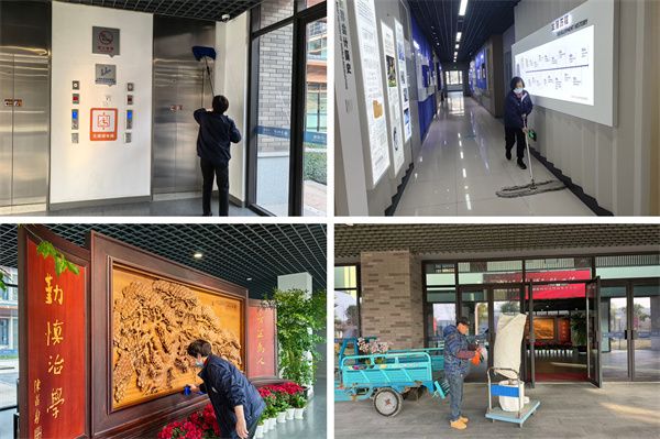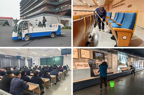 物业服务部分别组织召开保洁人员、绿化养护人员、会议服务人员工作会议,结合日常工作和重点工作进行了安排部署。保洁人员对校园内的各类乱张贴纸张进行了清扫擦拭,安排专人集中清洗垃圾桶,全面开展校园环境卫生整治与消杀,对校园公共区域、教室、实验室、餐厅、公寓、卫生间、电梯等重点区域进行全面清洁,做好台账记录;会议管理员逐一检查所有报告厅、会议室的仪器设备及空调灯光设备的运转情况;收发室认真整理并归类各部门(单位)的报刊杂志和信函;马路工仔细清扫校园,绿化养护工认真做好绿植苗木养护工作,更换公共区域绿植、整理水培植物,全面开展培植、修剪、打药、拔草、清理落叶等春季绿化养护管理工作,确保校园绿化景观效果和绿植正常生长,全力打造绿色生态校园,用整洁美丽的校园环境迎接全体师生返校。