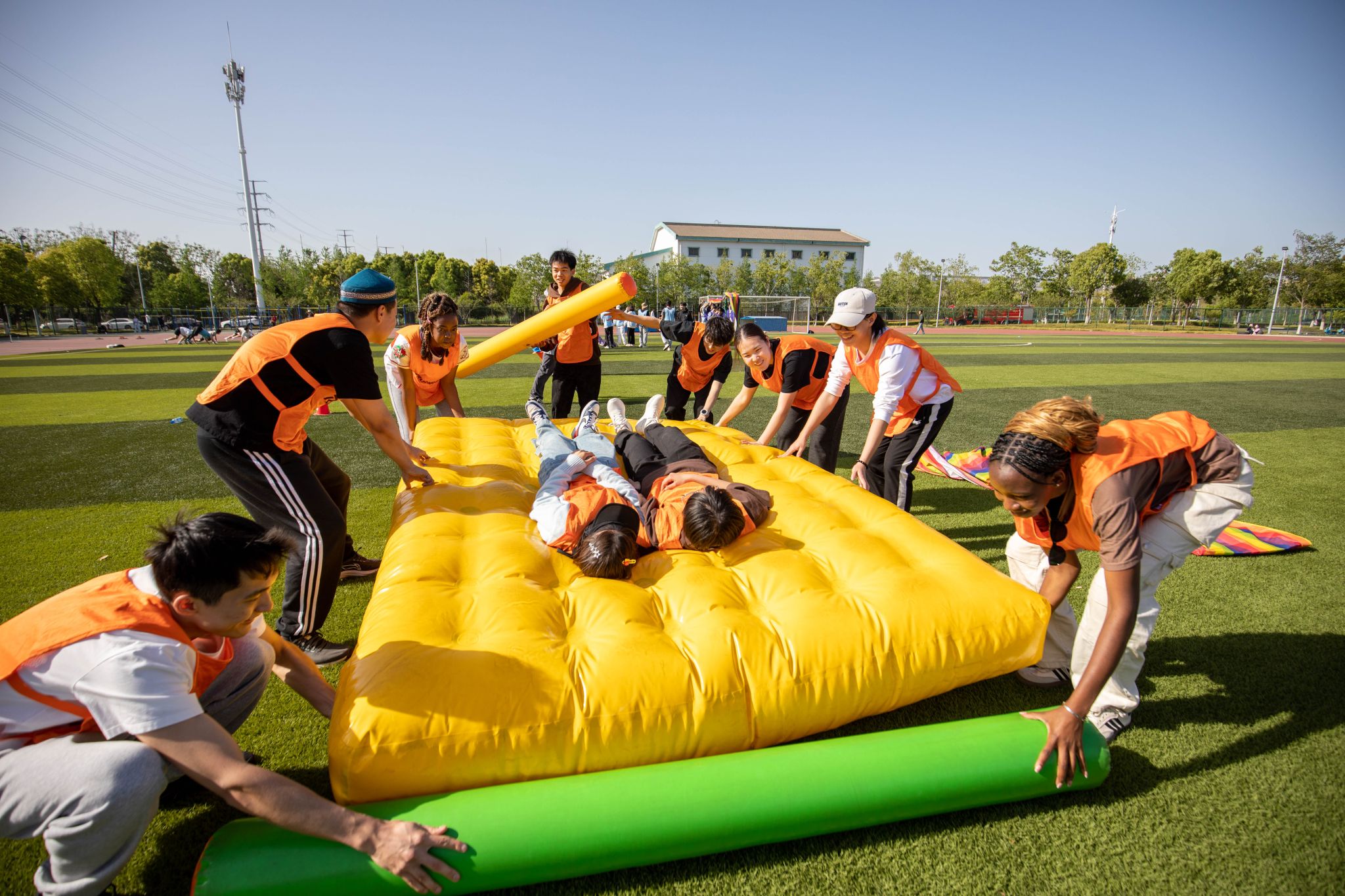 4月13日下午,我校首届“国际文化月”中外学生趣味运动会在梁林校区二期运动场圆满举行。