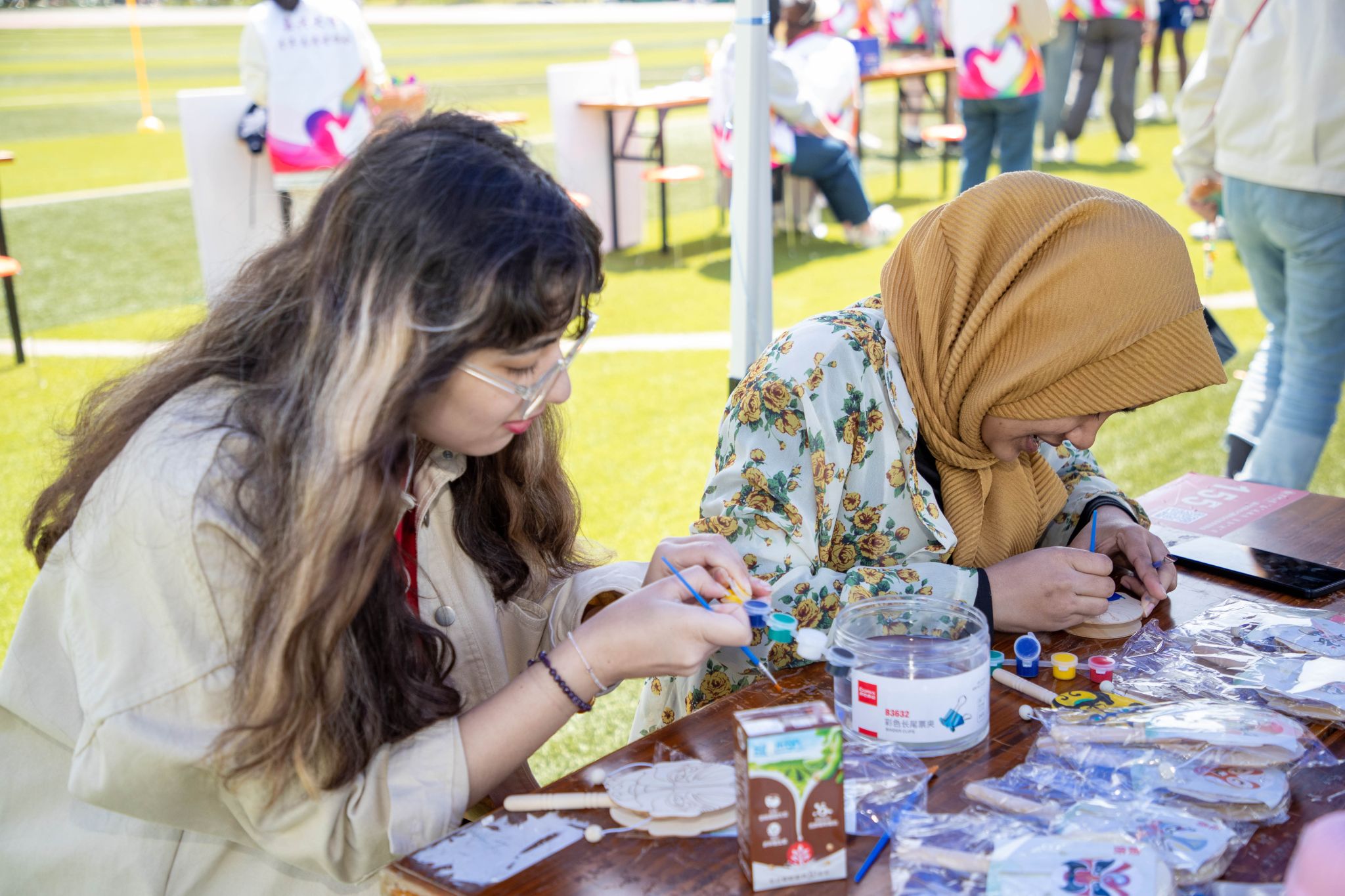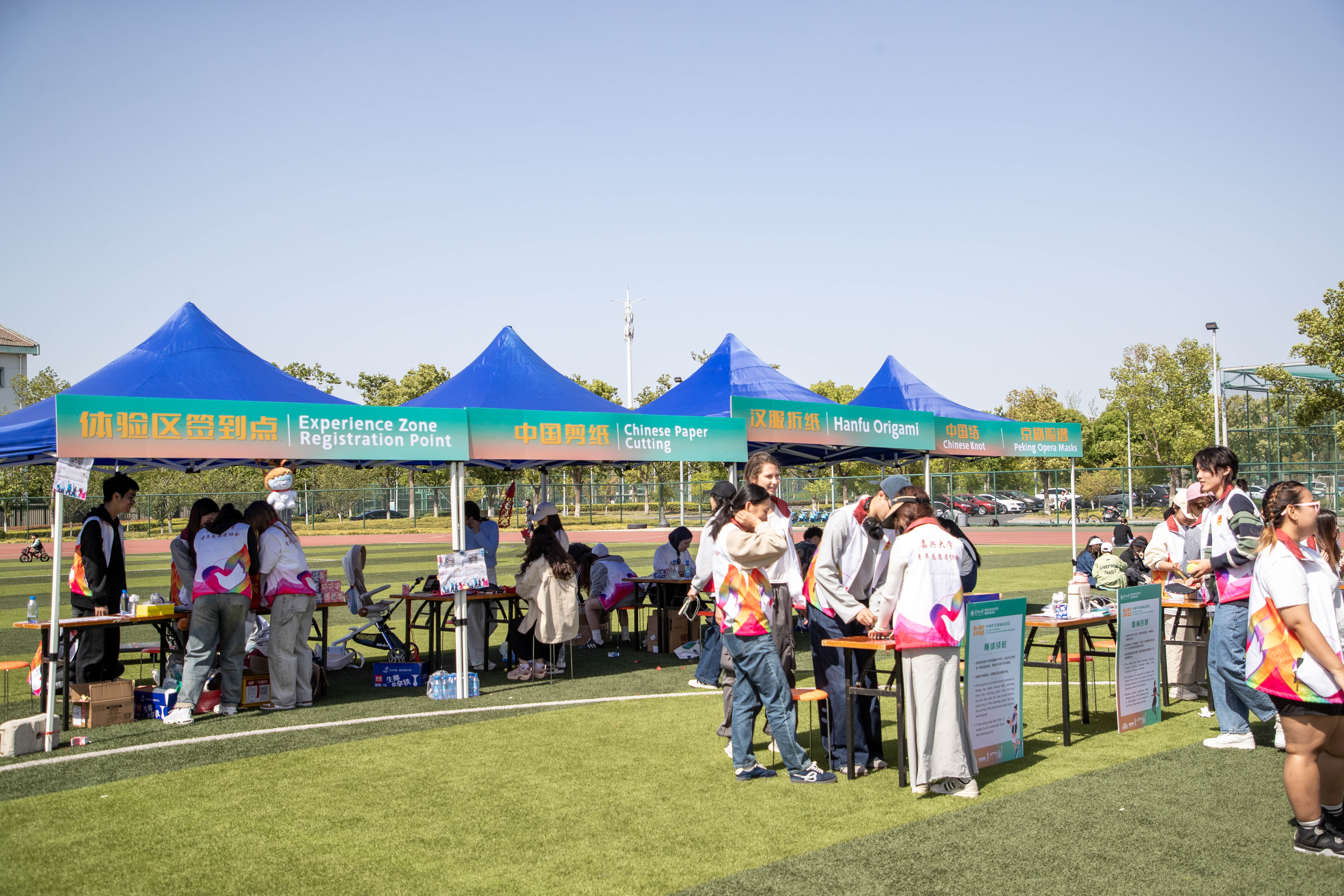 除比赛区外,本次中外趣味运动会特别设置了休闲体验区,为全校师生提供沉浸式互动体验。
