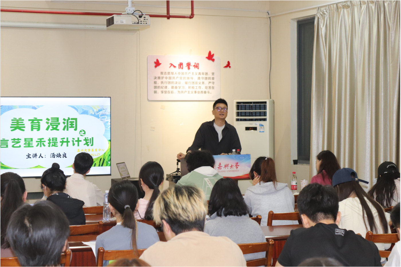 启动仪式上,美育中心主管刘洋就“言艺星禾提升计划”如何通过深耕专业赋能、打通实践链路和拓宽美育边界构建语言艺术育人长效机制向全体同学做出说明,且向首期学员发布了两周内完成命题创作的挑战,成果于后续课程进行成果展示。