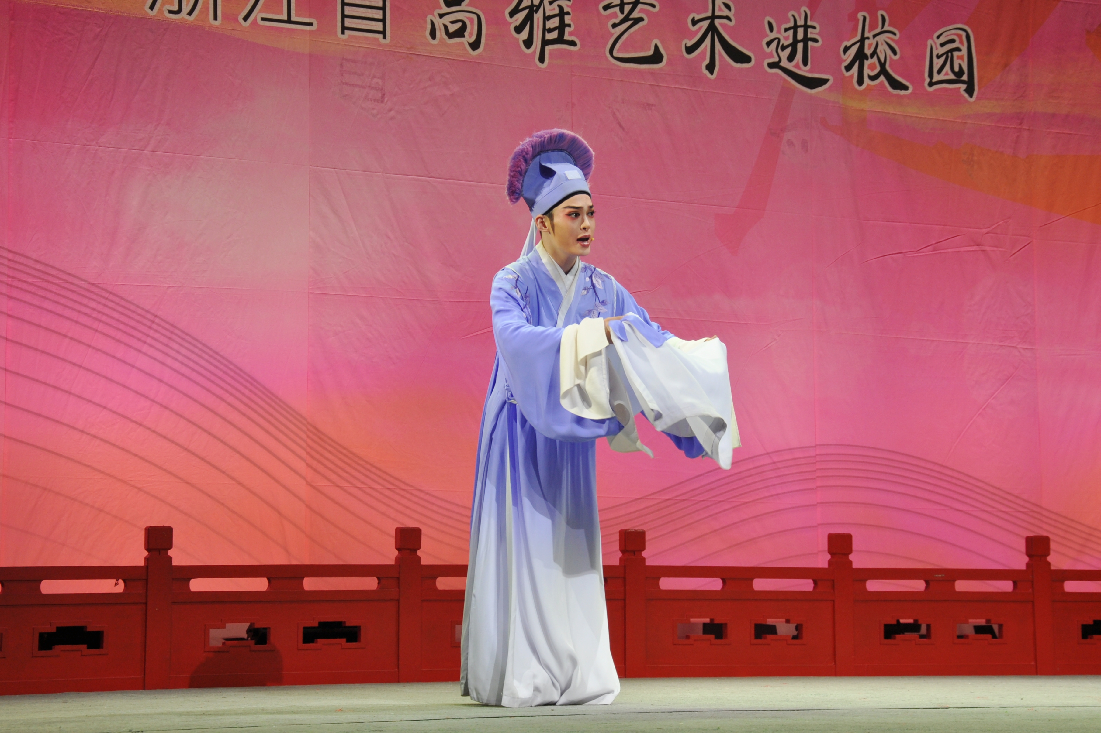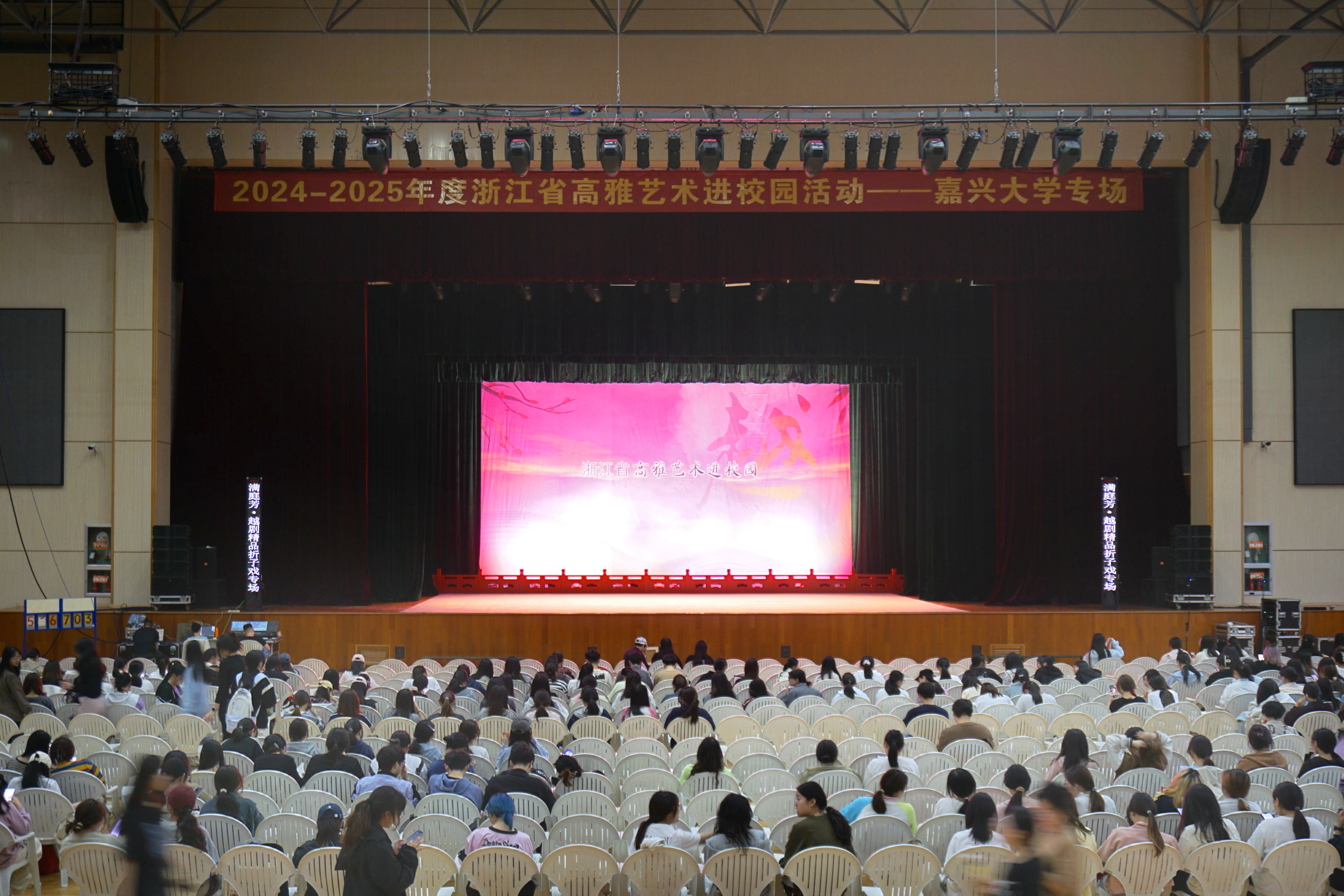 4月23日晚上,由浙江小百花越剧院带来的高雅艺术进校园活动精品越剧折子戏专场演出在嘉兴大学平湖师范学院、教育学院体艺楼举行。