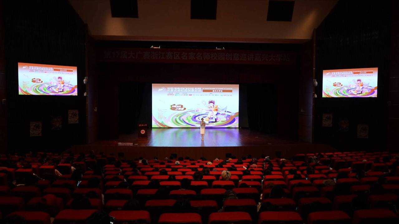 4月27日,第17届全国大学生广告艺术大赛浙江赛区名家名师校园创意巡讲活动在我校初心剧场举行。