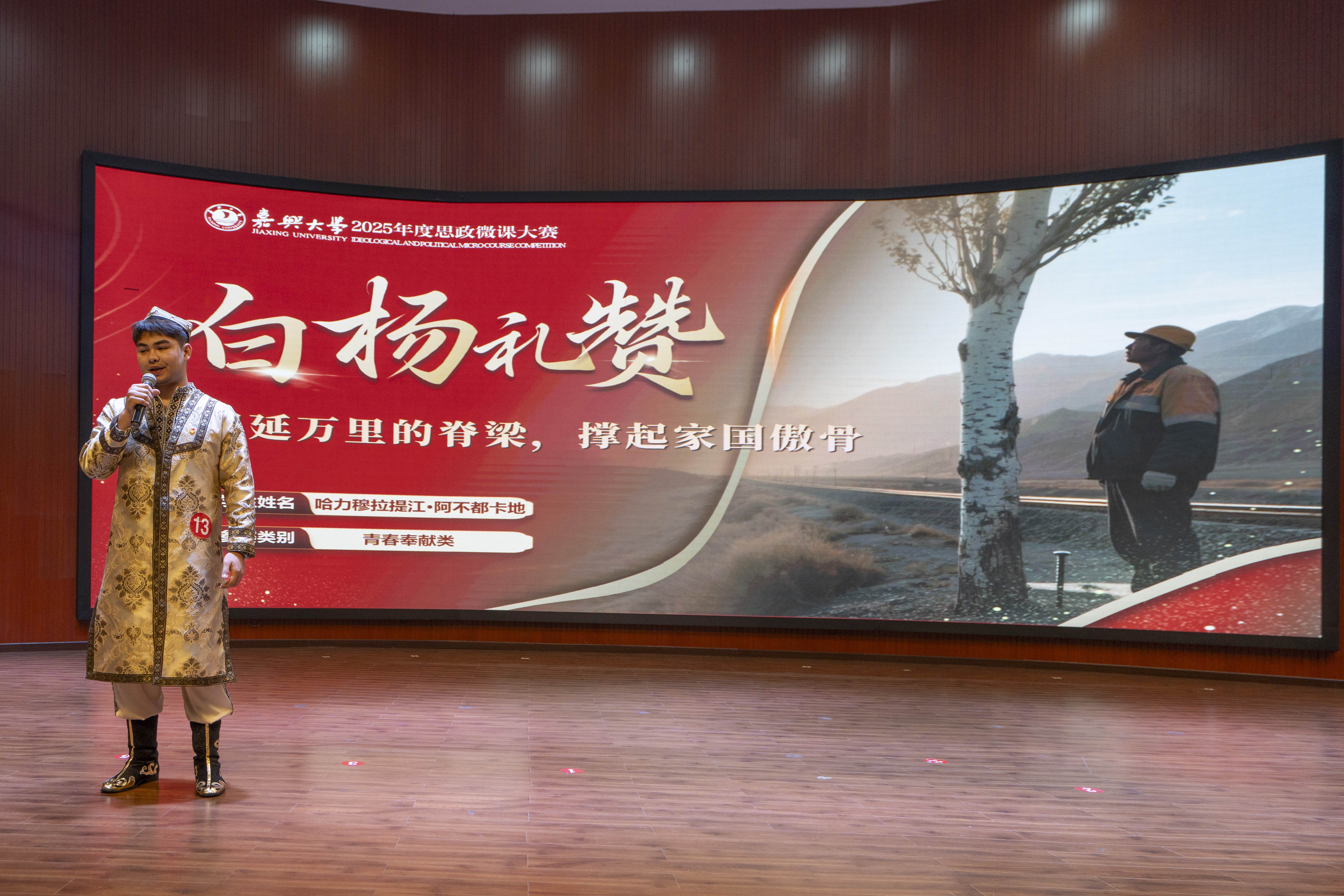 经过院赛初选、校赛筛选,13位师生脱颖而出,站上了决赛舞台。师生同台竞技,各显其能,让现场观众直呼过瘾。从垦荒精神的传承,到“千万工程”的乡村蝶变;从展现教育援疆的赤诚初心,到讲述遗体捐献者的大爱传承,选手们以扎实的知识储备传递时代强音,用真挚的育人情怀将思政教育融入生活叙事,有力诠释了思政教育立德树人的作用。