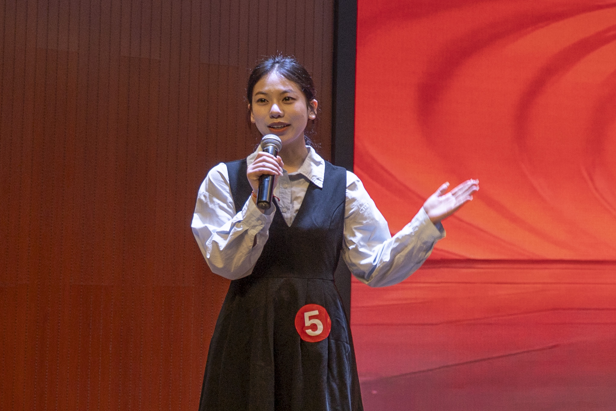本次决赛由校团委书记张婧嫄、党委宣传部副部长徐国彪、平湖市传媒中心资深主播周佳音、南湖区委宣传部理论科科长魏梦雅和平湖市委宣传部理论科科长李春晓莅担任评委。大家一致认为,今年的决赛特别“卷”,藏语、维语点缀其中,马灯、柑橘等各种小道具应接不暇。“有德有爱有格局有深度”,周佳音感慨到。