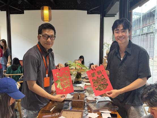 除了参观访问,项目安排了丰富的沉浸式中华文化体验活动,营员们亲身参与到西瓜灯雕刻、书法、金箔画、中国茶艺、糖糕和香囊制作中。此外,营员们走进平湖中学,走进平湖中学学子家中,开展友谊篮球赛,品尝地道的江南美食,学习简单的中文日常用语,畅谈中西方生活和学习的不同。这些活动不仅带来了欢乐,更架起了文化沟通的桥梁,让营员们在实践中感受到中华文化的独特魅力,增进了彼此间的理解和友谊。