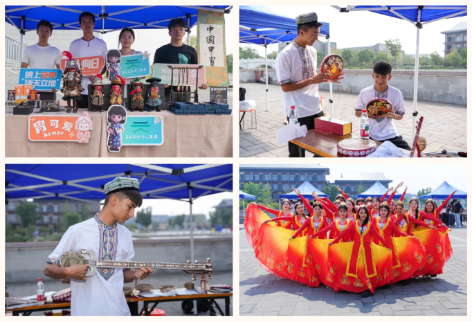 “团团”映共青团初心,“巴扎”载民族风情——这场校园集市里,阿克苏的框鼓节奏、大枣扎糕的甜香,与嘉兴的手作巧思、书法墨韵交相辉映。甲胄小兵人着精致铠甲配长枪,既有少侠英气,又显憨态可爱,让人爱不释手;益满湘西的同学借照片讲公益故事,点燃在场者的公益心;校友企业闯货也为活动助力。两地学子以展示、体验为桥,让地域文化碰撞出温暖火花,实现文化互赏、精神互鉴。