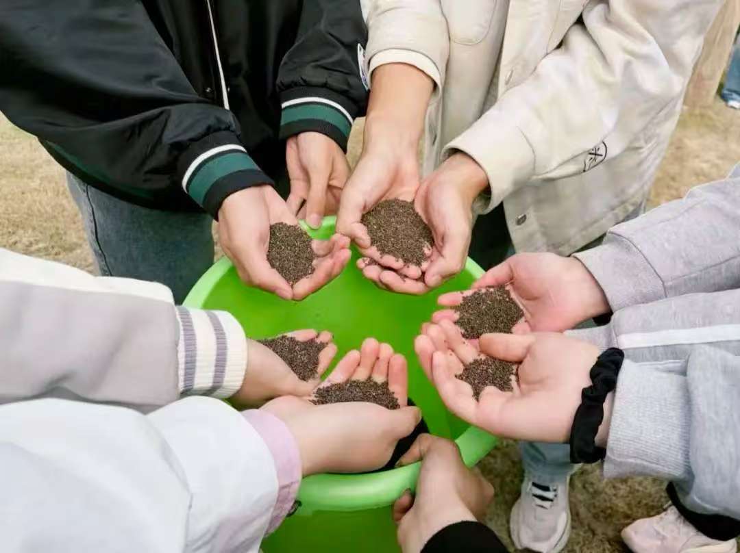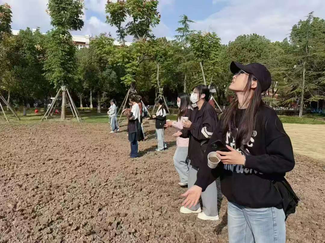 活动在一期大草坪举行。同学们在专业指导老师的带领下分组开展播种,从选籽、松土到播种、浇水,各环节井然有序。尽管松土工作十分辛苦,但同学们的热情丝毫未减。每一次俯身劳作、每一回挥锹培土、每一次撒播种籽,都饱含着对来年满园春色的美好期许。