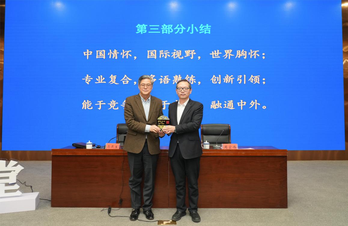 报告结束,周宏伟代表学校向马燕生赠送省身讲堂纪念杯。