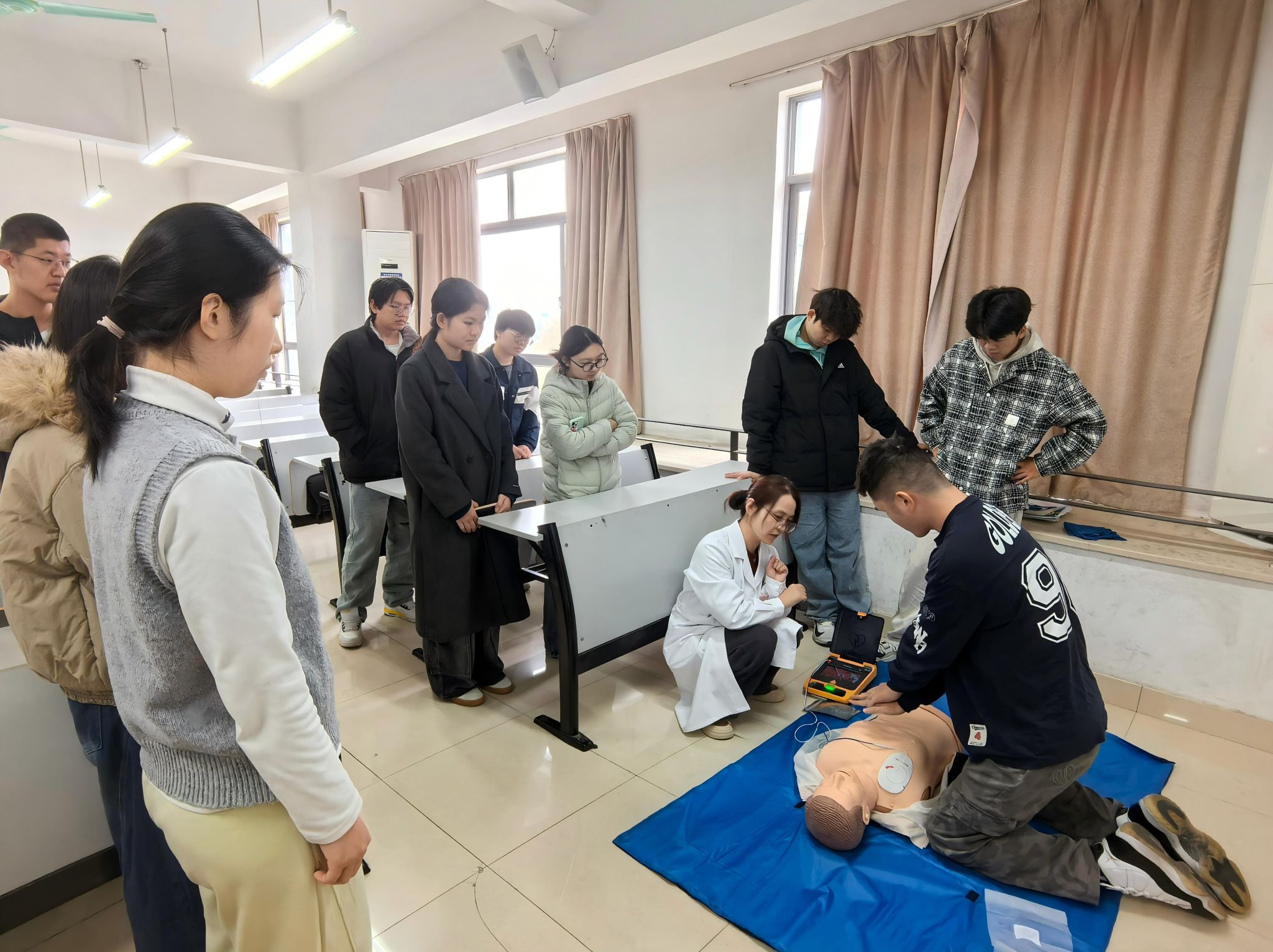 信息科学与工程学院于12月2日上午组织开展安全培训活动。本次培训采取“理论+实操”相结合的形式,涵盖知识测评、急救教学与消防演练三大环节。辅导员与各班学生代表共同参与。