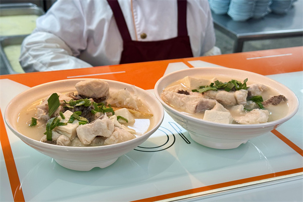 此次活动是湘家荡度假区管理方与学校的一次暖心联动。后勤食堂师傅们为最大限度保留鲜味与营养,对鲜鱼进行了专业处理与烹制。师傅们将处理好的花鲢鱼煎至两面金黄,加入清水将汤汁熬成奶白色,放入豆腐慢炖,再撒上一把葱花提香,香气扑鼻的豆腐鱼汤便出锅了。餐厅厨师长介绍道,豆腐鱼汤营养丰富易吸收,特别适合给冬日留校师生补充能量。