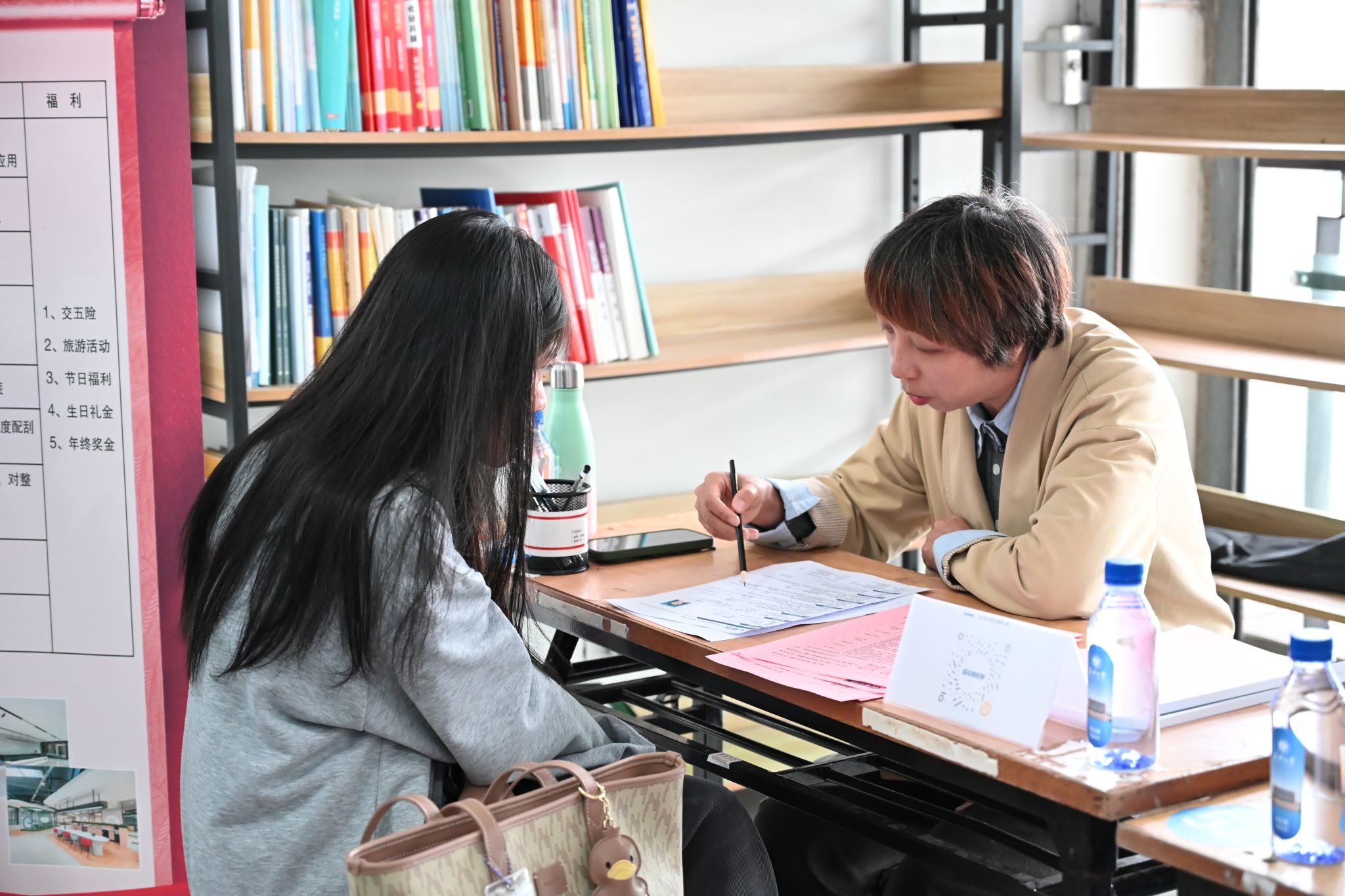 招聘会现场秩序井然、氛围热烈。各企业招聘负责人通过宣传资料、现场讲解等方式,详细介绍企业概况、岗位需求、发展通道及薪酬福利等信息。毕业生们手持简历,积极与企业HR交流,主动咨询岗位职责、技能要求、职业成长等问题,充分展现学院学子扎实的专业功底与良好的精神风貌。学院领导、专业教师及辅导员深入现场,与用人单位深入交流,了解行业人才需求趋势,推介学院人才培养特色与毕业生优势。现场设立了24小时“职得”能量驿站,提供就业政策咨询、简历优化指导、校企需求对接等“一站式”就业服务。