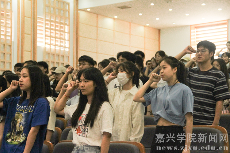 近日,我校2021年世界互联网大会乌镇峰会志愿者出征仪式在TCL报告厅举行。校团委书记张婧嫄出席并讲话,校团委马晋老师、外国语学院团委副书记张丹、数据科学学院团干部张圣晨及嘉兴南湖学院程永康老师出席仪式,180位志愿者参加仪式。
