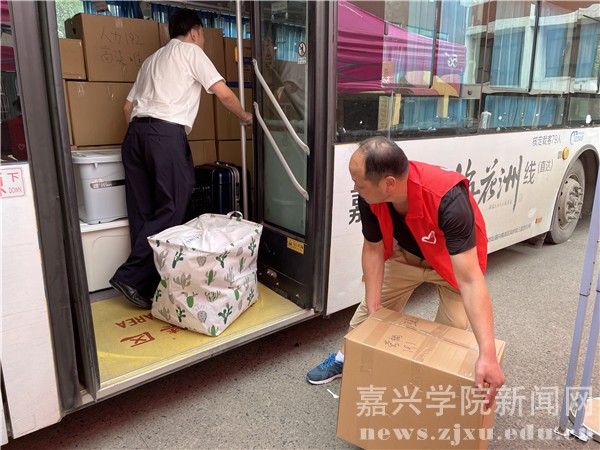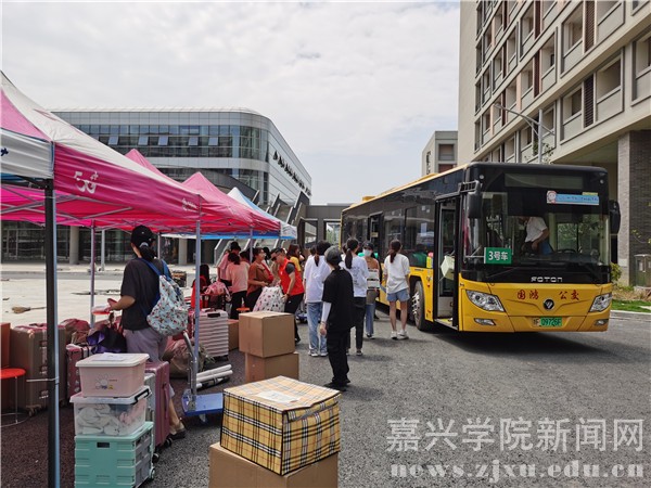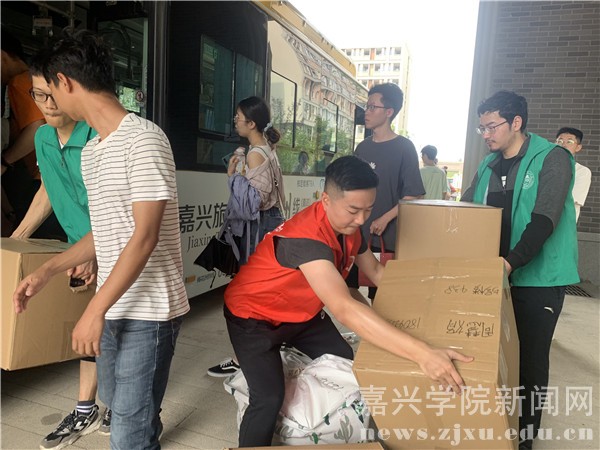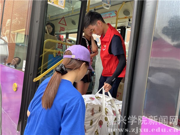 在车辆上车点,搬迁学院的师生早已将物品打包整齐,提前等候公交车辆的到来。党员志愿者提前到岗,在现场有序引导,确保物品搬迁上车高效运作、井然有序;学生志愿者充当“贴心小助手”,帮助同学们将行李物品搬上车辆、摆放整齐。