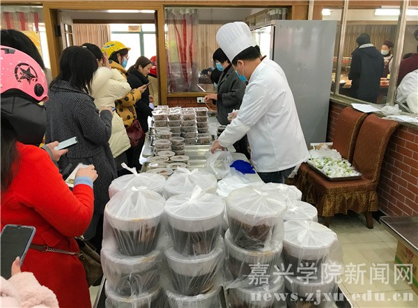 活动中,教职工于周一至周四通过“嘉院微生活”微信公众号线上预订教工餐厅的“嘉里”菜品,并于周五中午至预订时选定的教工餐厅自提。线上预订不仅符合厉行节约、反对浪费的主旋律,而且节省了教职工周末的购菜时间以及一定的生活成本。