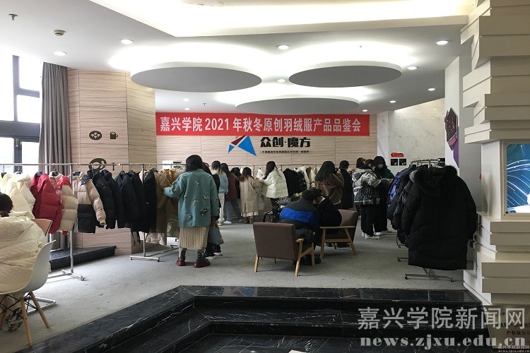 12月23日,嘉兴学院2021秋冬原创羽绒服产品品鉴会在中国羽绒城商务楼众创空间亮相。现场展出的100余款羽绒服原创新品由我校应用技术学院服装设计专业学生独立设计、制作而成。杭州、上海、苏州及平湖本土50余家羽绒服企业慕名而来购买版权、洽谈定向产品开发合作事宜。