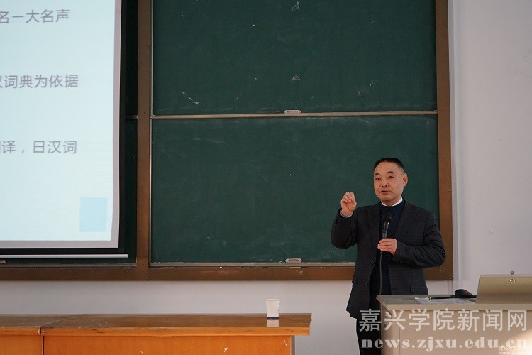 12月12日下午,上海外国语大学施建军教授莅临外国语学院,作题为“关于中日近义词的互译性问题”的学术讲座。讲座由外国语学院副院长郭永恩主持,日语系全体教师和数名英语系教师以及百余名日语专业学生参加讲座。
