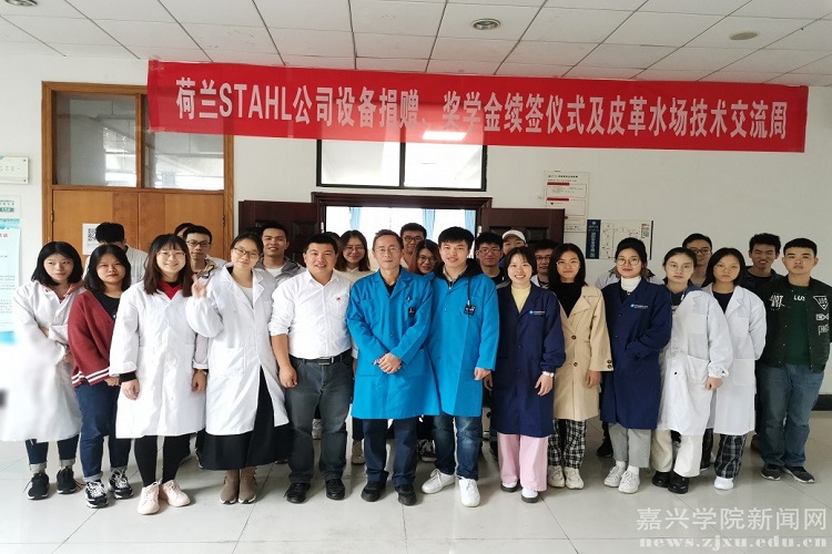 10月26日至11月1日,材纺学院轻化工程系邀请荷兰STAHL公司李艳经理、王利根高工、王毅工程师来院举行STAHL设备捐赠、奖学金续签仪式及皮革水场技术交流周活动。轻化(实验)161班全体学生、轻化(实验)181班学生代表及轻化工程系教师参加仪式。