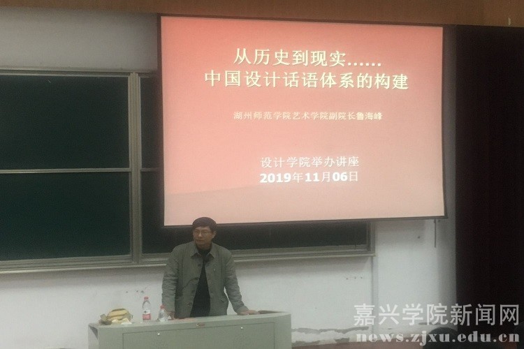 11月6日下午,湖州师范学院艺术学院副院长鲁海峰教授来设计学院作题为《从历史现实中国设计话语体系的建构》的讲座。设计学院师生代表聆听讲座。