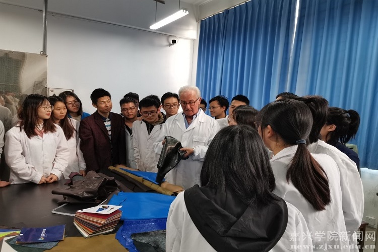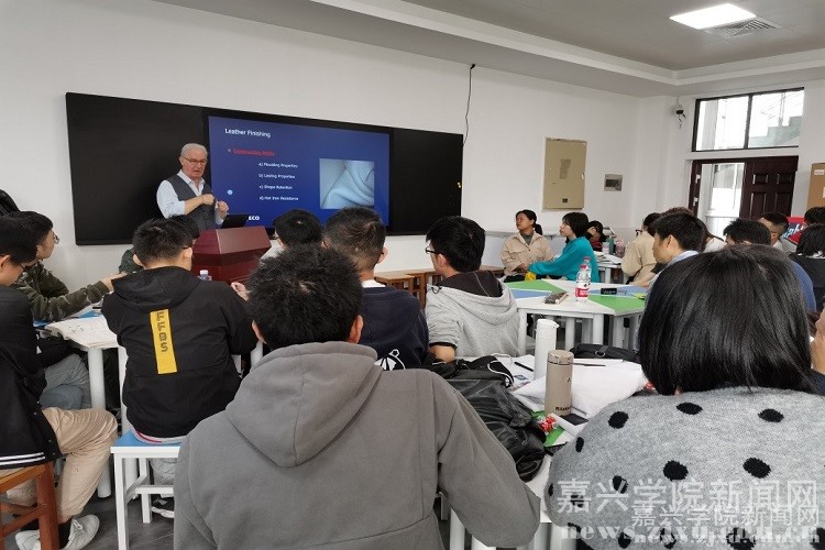 徐建平简要介绍了公司的情况及并对同学们提出希望。随后,“Smit&Zoon皮革涂饰技术交流周”正式开启。Fabriozio Ugolini博士给师生全英文讲解题为“LEATHER FINISHING COURSE:Meet Technology and Art”的讲座。