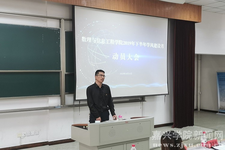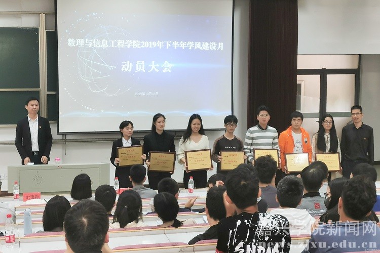 10月18日中午,数理与信息工程学院在梁林校区7号楼报告厅举行2019年下半年学风建设月动员大会。学院党委副书记余德将、学工办老师及各班班委代表参加大会。