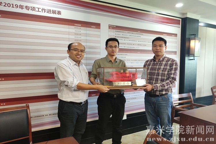 10月15日中午,浙江师徒智能科技有限公司红船捐赠仪式在行政楼创大会议室举行。浙江师徒智能科技有限公司嘉兴分公司负责人、我校06级校友王凌晶,校友联络办公室副主任徐进及学校办公室有关人员出席仪式。