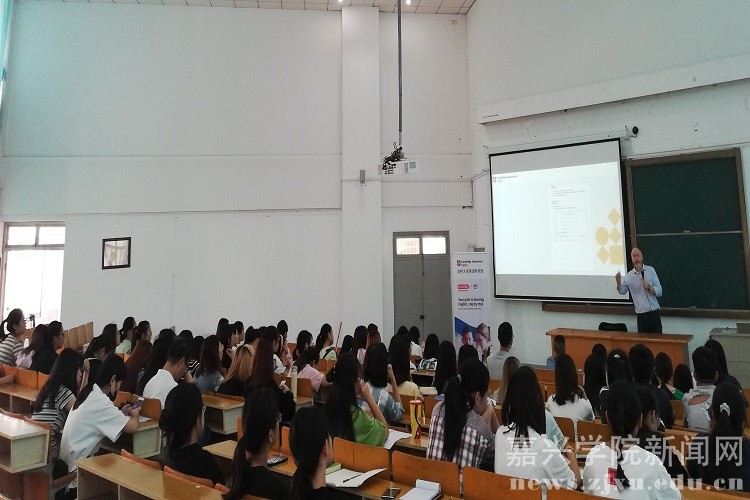 Ian Cawley先生在英语语言教学和测评领域拥有长达25年的工作经验,他为我校学生作了题为“Business qualifications: how and why for students”的讲座。他首先说明了商务英语资格证书的特点与用途,再从口语、写作、词汇、听力等方面解读了如何才能高效地进行商务英语学习和备考以及提升语言应用能力。针对学生提出的问题和疑惑,Ian Cawley先生一一进行了解答。
