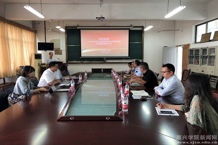 建筑工程实验中心主任、嘉兴学院BIM技术中心主任贺成龙教授向专家组汇报了嘉兴学院建筑信息模型(BIM)职业技能等级考核点的建设情况。专家组肯定了学院的试点工作。与会人员对1+X(BIM)试点工作进行了深入交流。