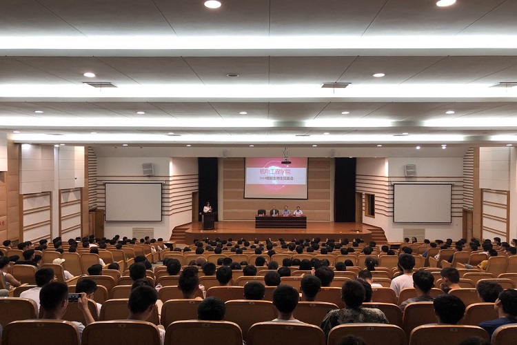9月4日晚,机电工程学院2019级新生师生见面会在TCL报告厅举行。机电工程学院院长左春柽、党委书记丁玉泉、副院长黄风立、党委副书记战昕,各系主任、副主任、实验中心主任、三办主任、学工办全体辅导员及全体新生参加见面会。