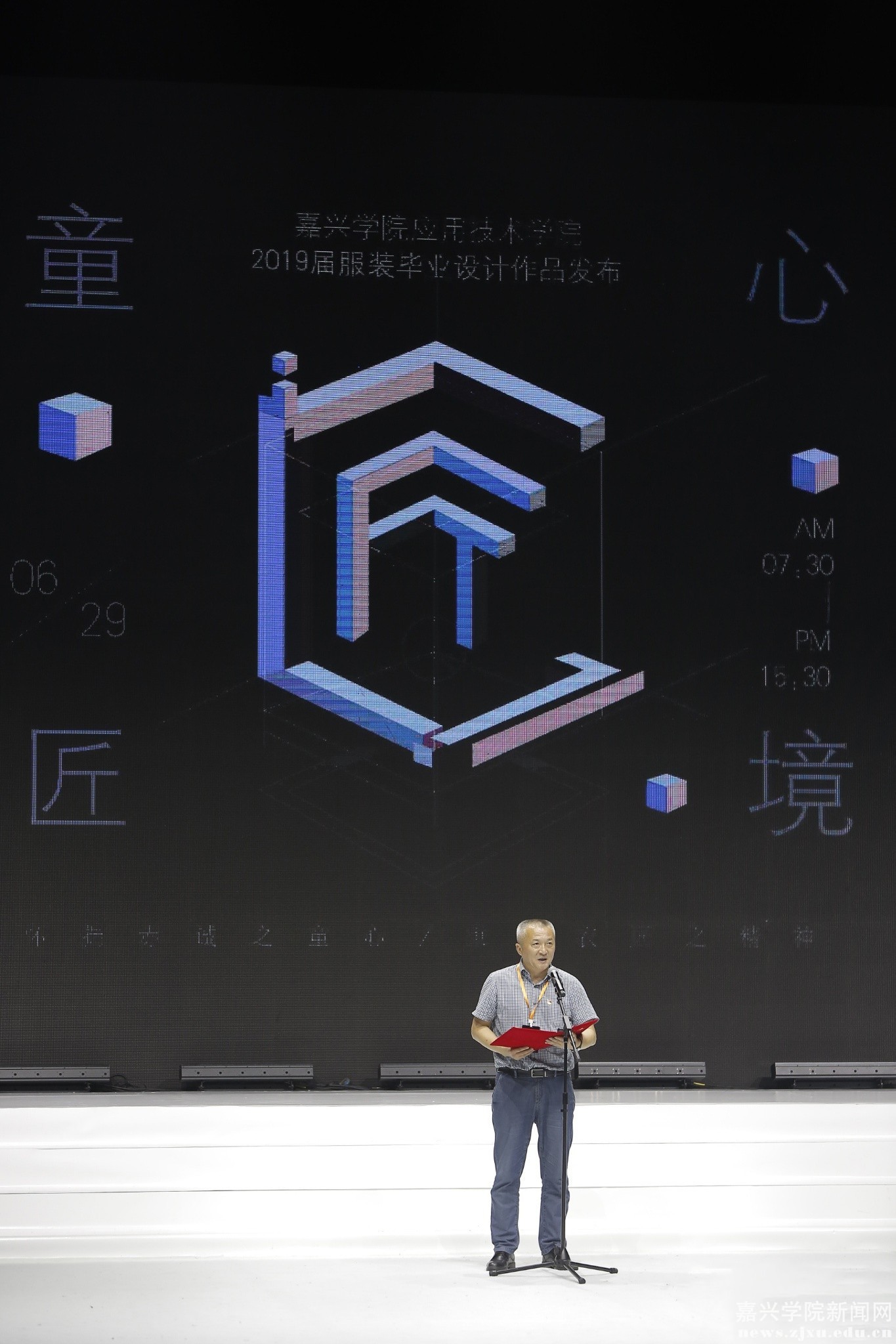 6月29日下午,中国·平湖羽绒服时尚周系列活动之一的“童心匠境”——嘉兴学院应用技术学院2019届服装毕业设计作品发布活动在平湖体育馆上演。活动由应用技术学院副院长苏海林主持,应用技术学院院长李勇致辞。