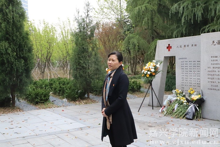 院党委书记洪坚率领各支部书记、委员及学生党员代表来到梁林校区“无语良师”碑前追思悼念。她代表学院党委向“无语良师”敬献鲜花,带领全体党员鞠躬致礼,表达对“无语良师”无私大爱的生命礼赞。随后,洪坚结合“无语良师”的背景由来、重要意义及当下启示给党员们讲授了一场“现场党课”,令全体党员备受鼓舞。