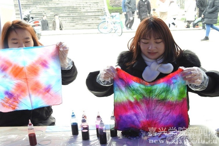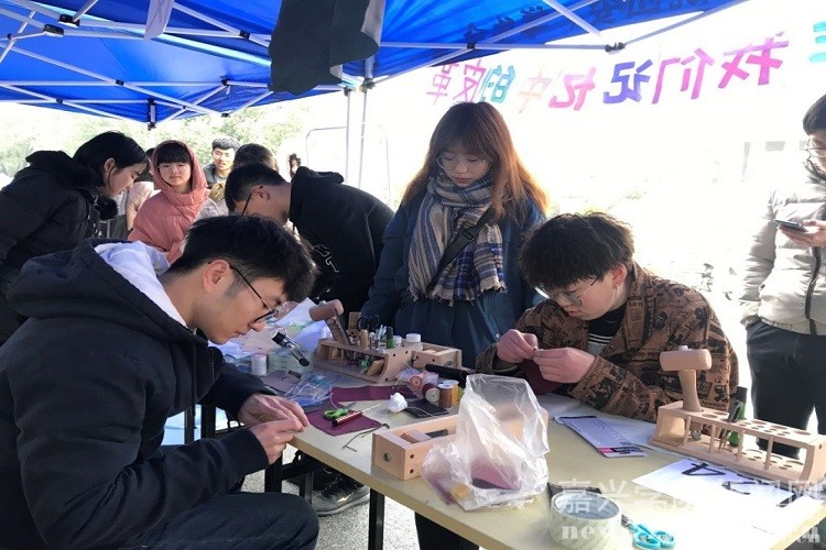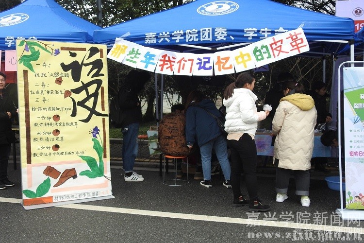 志愿者一早便在梁林老食堂前集合,围绕皮革面料展示、皮件清洁护理、皮具手工制作及扎染小课堂等开展活动。大家向学生介绍了皮革的分类、真假皮制品的鉴别及日常皮具的清洁护理知识。过往同学被别出心裁的宣传版面和画幅吸引,纷纷驻足向志愿者咨询学习,在志愿者的指导下,体验了手工皮具制作和手工扎染,在活动中亲近和了解材料专业。