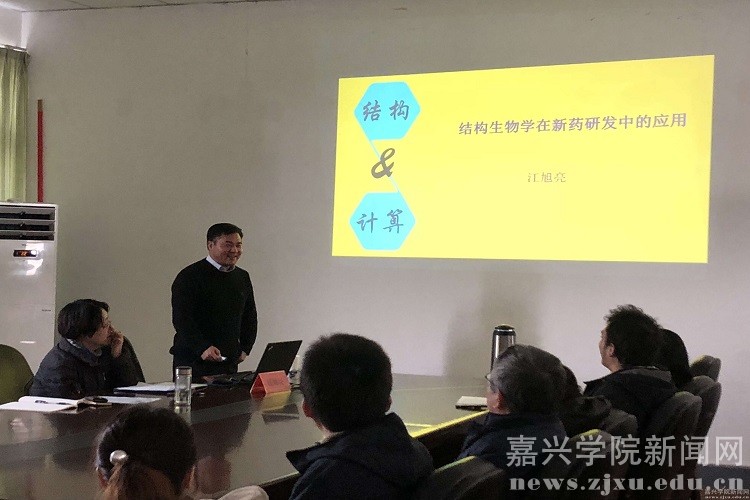 报告题为“结构生物学在新药研发中的应用”,展示了结构生物学在新药研发中的作用、取得的成果和最新进展。报告引起了在场教师热烈的交流和讨论,大家都获益匪浅,并向江旭亮提出了自己疑惑的地方。江旭亮一一进行了解答。