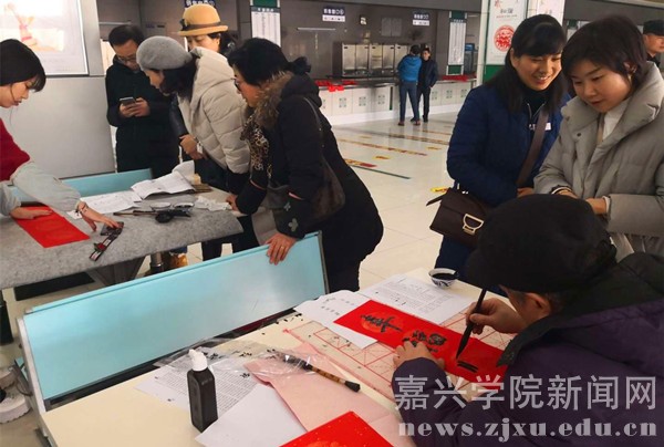 为营造欢乐祥和的春节氛围,1月18日中午,由后勤服务集团分工会组织的“迎新年送春联送福字”活动在春华苑自选餐厅举行。活动特邀校南湖书画院的书法爱好者现场书写春联和“福”字赠送广大职工。