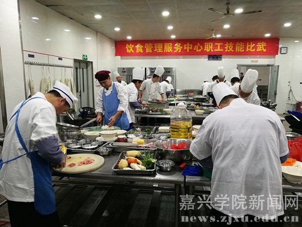 12月14日下午,后勤服务集团饮食管理服务中心在梁林第二食堂举行职工烹饪技能比武,18名选手参加比武。比赛特邀嘉兴市餐饮协会俞炳荣(中国烹饪大师)担任评委,后勤服务集团副总经理王伟群前来现场观摩指导。