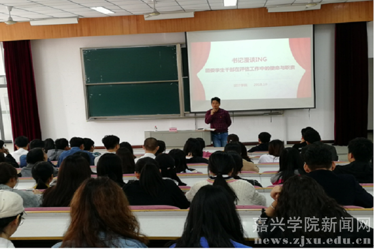 10月18日中午,设计学院在梁林校区7号楼报告厅举办第二十五期书记漫谈ING活动,为备战教育部本科教学工作审核评估作冲刺动员。学院团委学生会成员、全体班长、团支书会议。