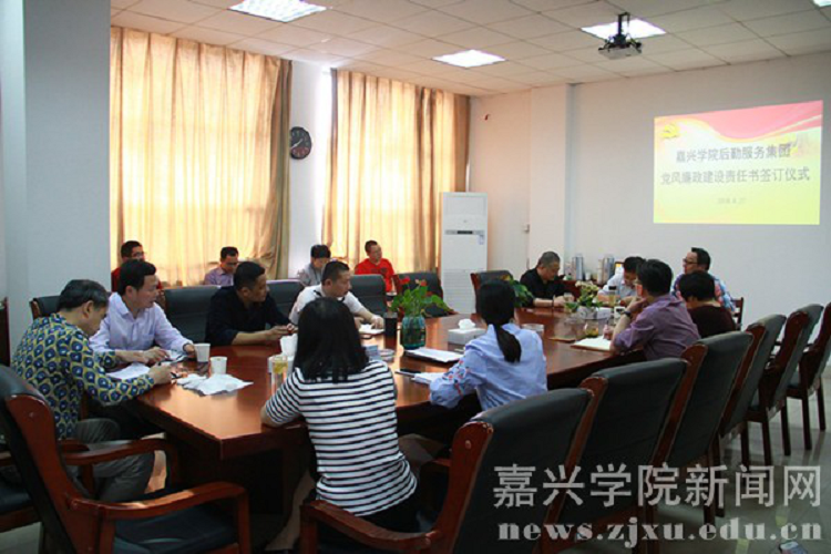 4月27日下午,后勤服务集团举行党风廉政建设责任书签订仪式。集团党政领导班子、各二级部门负责人参加会议。