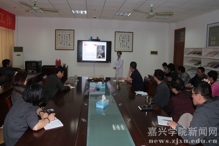 4月19日上午,平湖校区服务中心镜心讲堂第一讲“心肺复苏急救专题培训”在平湖校区行政楼二楼会议室开讲。中心副主任蒋建其主持讲座。平湖校区医务室副主任医师蒋华英主讲。中心全体教职工、大学生自治委员会部分学生干部聆听讲座。