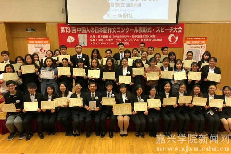 12月12日,第十三届中国人日语作文大赛表彰仪式在北京日本驻华大使馆举行。我校马滢哲和赵淑婷两位同学分获三等奖和佳作奖,日语专业教师杨海茹和平冈获指导教师“园丁奖”。 日本驻华大使横井裕和日本侨报出版社社长段跃中出席表彰仪式并为获奖者颁发获奖证书。 据悉,本届大赛主题为“中国新魅力”,由日本侨报社(中日交流研究所)和日本驻华大使馆共同主办,共收到了来自全国189所高校的近4031篇作文。经遴选,共产生特等奖1名,一等奖5名,二等奖15名,三等奖60名,佳作奖211名。