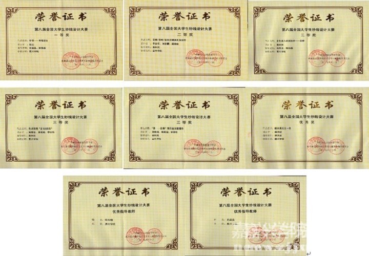 11月6日,第八届全国大学生纱线设计大赛决赛在新疆应用职业技术学院落幕。我校材纺学院共选送8件作品参赛,获一等奖和二等奖各1项,三等奖3项,优秀奖1项,优秀指导教师奖1组。 本次大赛由教育部高等学校纺织类专业教学指导委员会、中国纺织服装教育学会主办,天津工业大学承办,奎屯-独山子经济技术开发区、新疆应用职业技术学院协办。大赛共收到来自全国22所高校的269件作品。经初评,共有80件作品入围终评,最终评出一等奖6项、二等奖12项、三等奖18项、优秀奖44项,优秀组织奖4所高校,优秀指导教师6组。