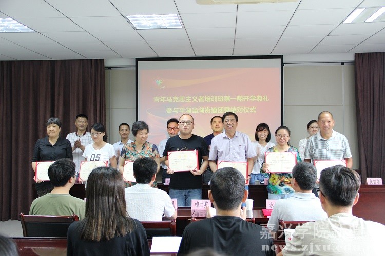6月24日下午,应用技术学院第一期青年马克思主义培训班(青马班)开学典礼暨与当湖街道团委结对仪式举行。平湖市团委书记程传保、当湖街道党委副书记潘加林受邀出席仪式。13个结对村社区负责人、主任及全体培训班学员参加仪式。