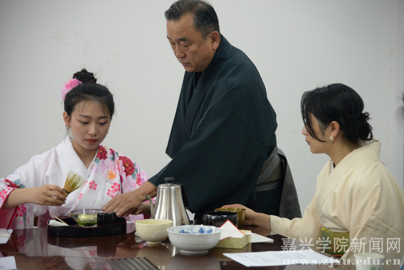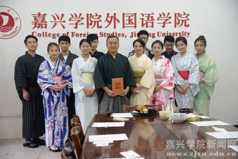 5月4日,精于日本和服、茶道文化的嘉兴日企协会会长青柳昌司先生来到外国语学院并给日语专业学生上了一堂日本文化课。学校外事处、外国语学院日语系教师代表参与本次课程。