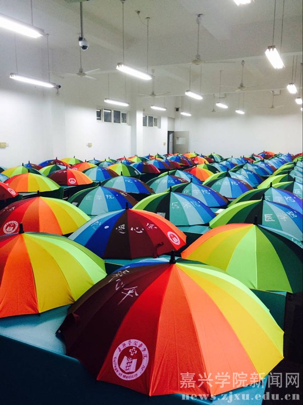由于江浙地带的天气总是变幻莫测,且嘉兴处于江、海、湖、河交汇之处,当天的天气变幻总是让人难以预测,雨天也是尤其常见。为减少给全校师生带来的不便,我院特为全体师生提供了“爱心伞”,旨在让一把小小的伞满载爱心传递在学校的每个角落,温暖你我他。