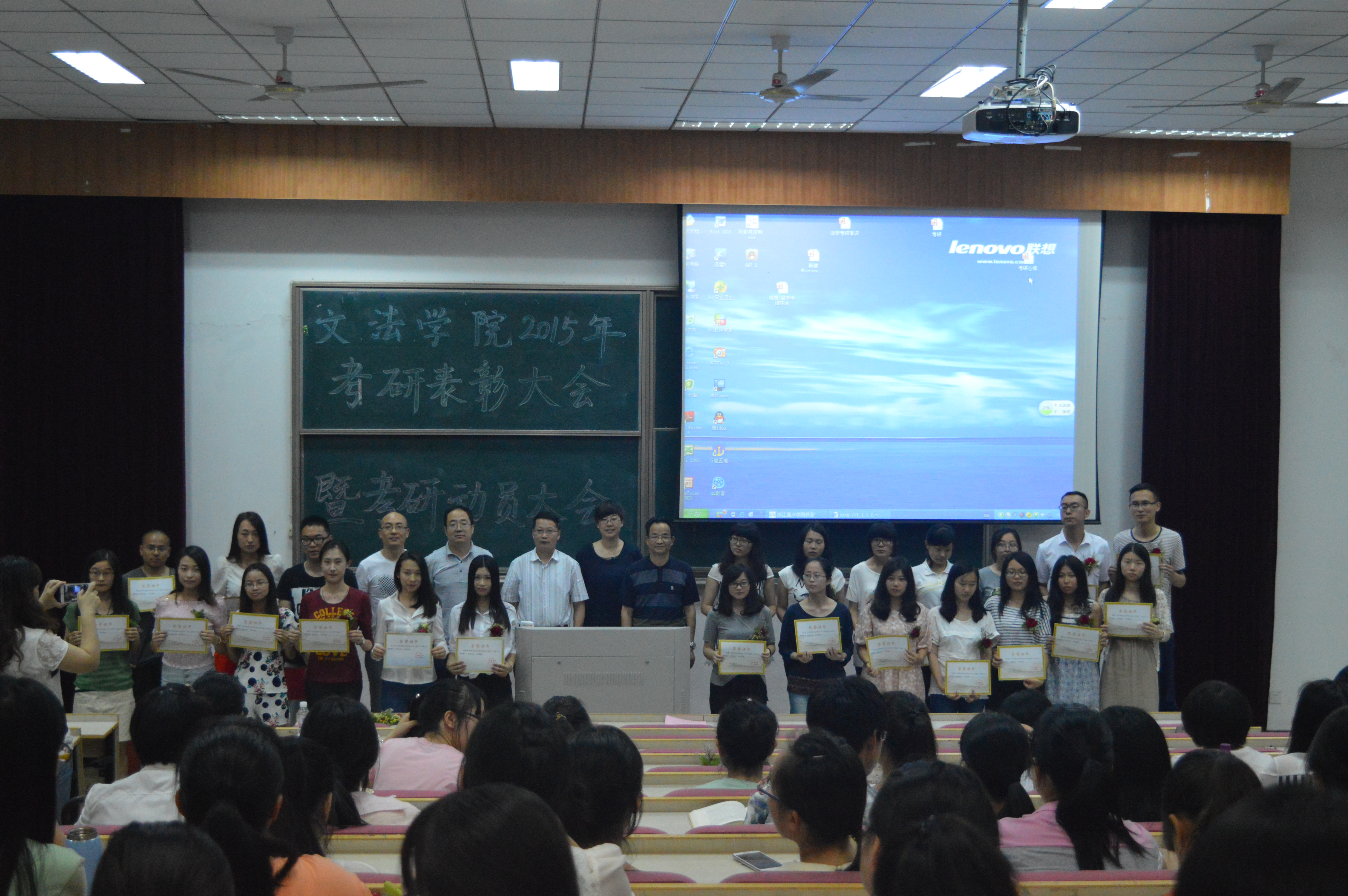 6月9日晚,文法学院举行了考研表彰暨考研动员大会。学院领导、学工办老师、32名考研录取同学和各年级学生代表等200多人参加了本次大会。